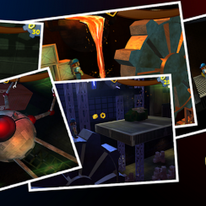 - Run & Jump through 10 levels full action avoiding crazy robots, collecting nuts and repairing broken machines.