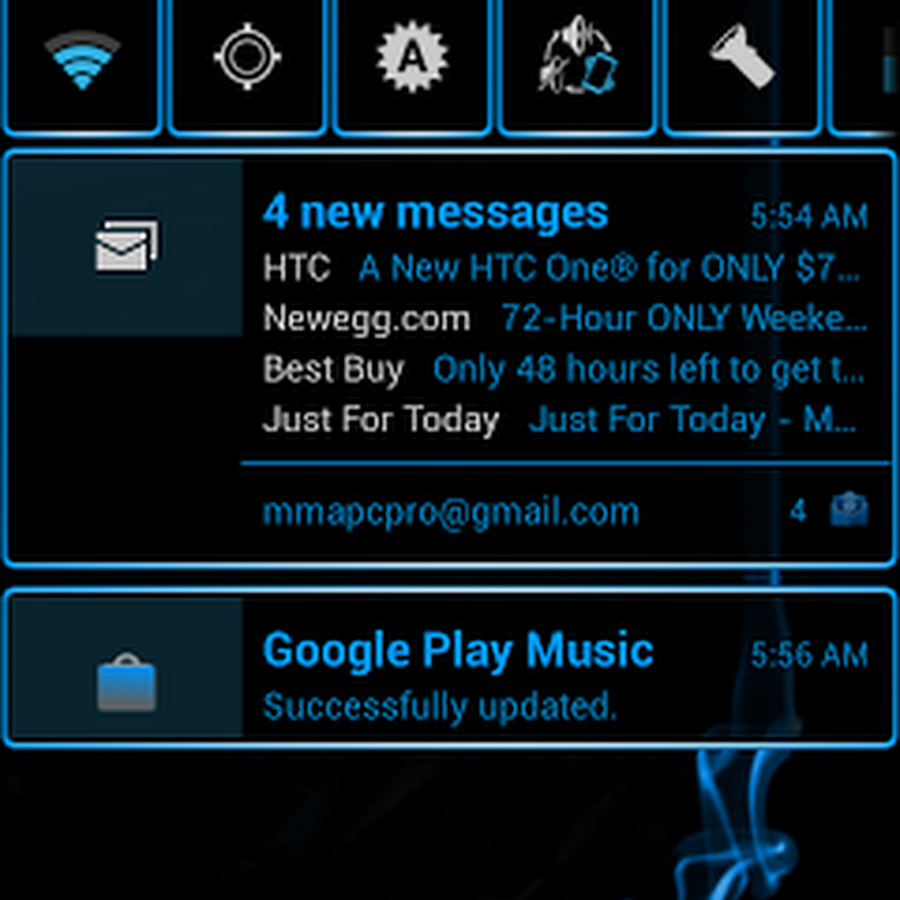 This is a vastly comprehensive JellyBlueX2 CM10.1 AOKP PA APK 2.3 for android application theme with frequent updates that incorporates many "holo" style blue/black attributes.