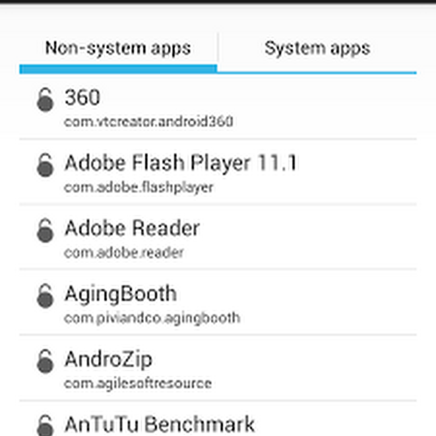 IF YOU WANT TO LOCK OR UNLOCK YOUR APP YOU MUST CLICK ON LOCK, NOT ON APP TEXT, BECAUSE IT MAY CAUSE A FORCE CLOSE FOR SOME SYSTEM APPS!