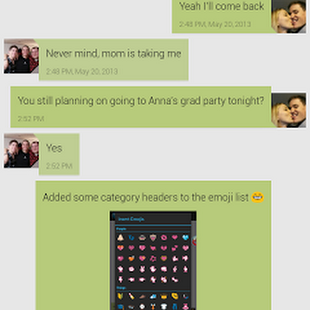 - Emoji support (Only if you phone supports them, many do not such as Touchwiz phones)