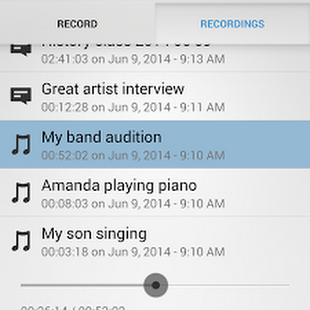 This application makes it simple to record and playback sound on your cell phone or tablet. A natural recording interface provides for you simple access to stop,record, sound altering, new recording settings and different capacities.